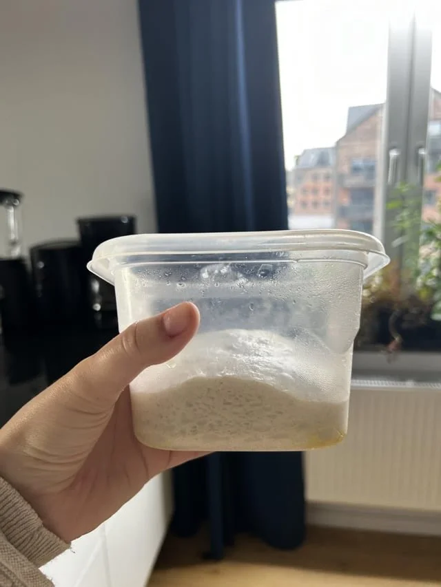 Put the dough in a clear container — it's like turning the lights on. You can watch the volume, see bubbles through the sides, and track what's happening in real time.